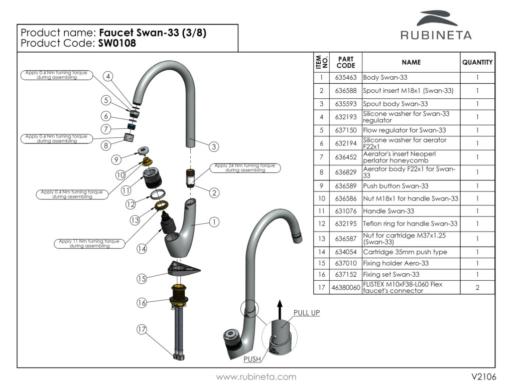 Dřezová stojánková vodovodní baterie SWAN-33 vyniká vysoce kvalitním zpracováním a spolehlivou funkčností všech součástí a materiálů.