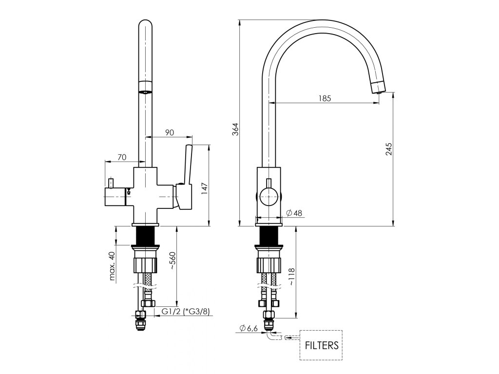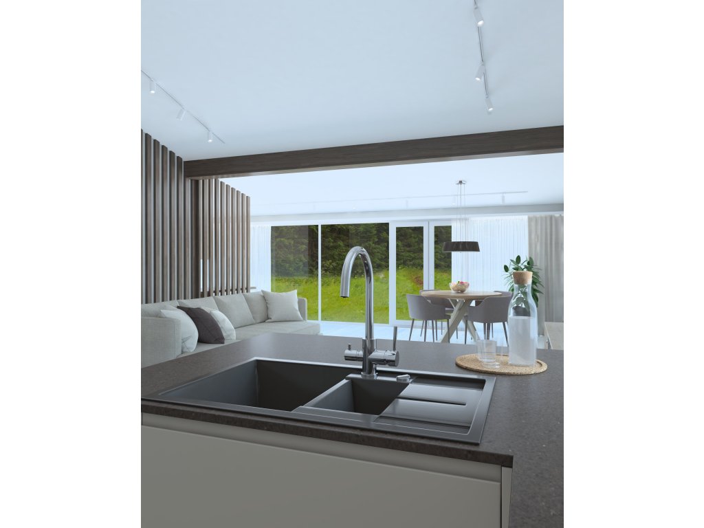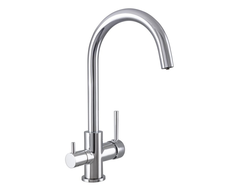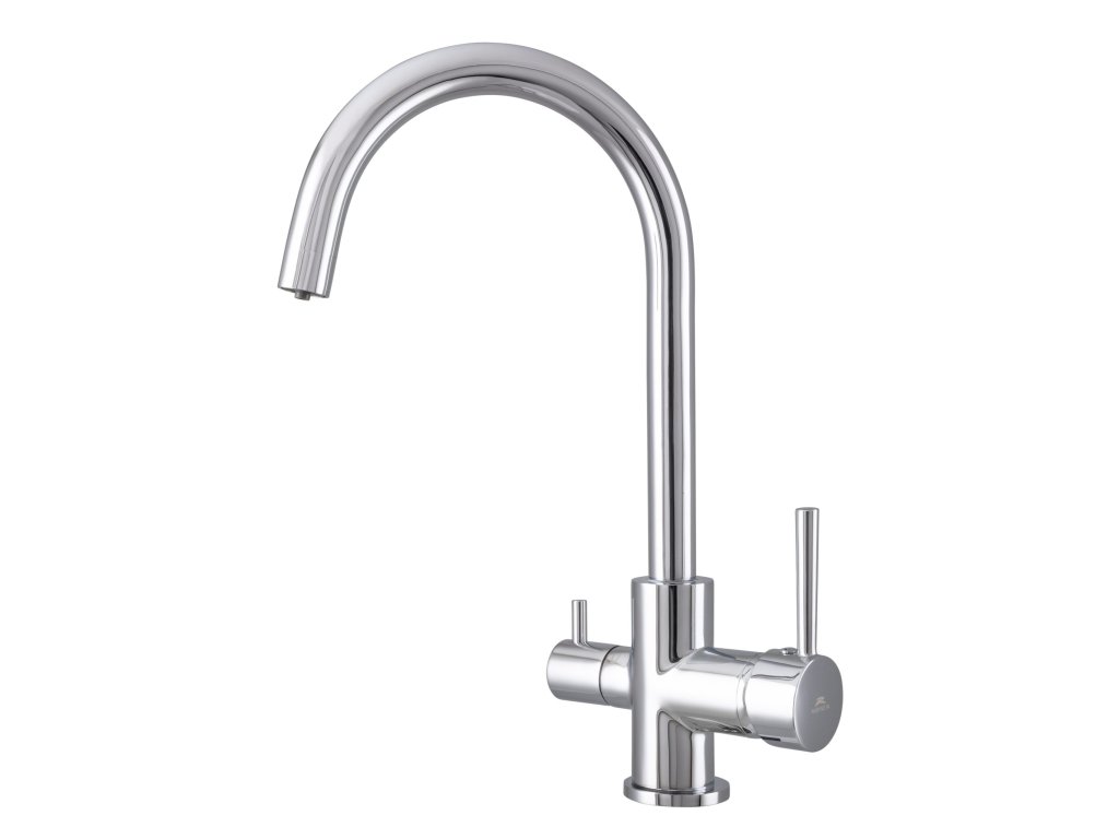 Dřezová stojánková vodovodní baterie ULTRA-32 s přípojkou na filtrovanou vodu. S atraktivním půlkruhovým výtokovým ramenem a poutavě tvarovanou pákou umocní vysokou úroveň moderní kuchyně. Standardní keramická kartuše 35 mm + přípojka na filtrovanou vodu s keramickým ½“ ventilem.