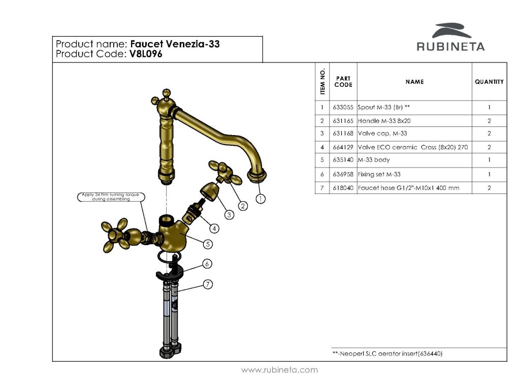 Rubineta Dřezová baterie VENEZIA V-33 OLBAV33