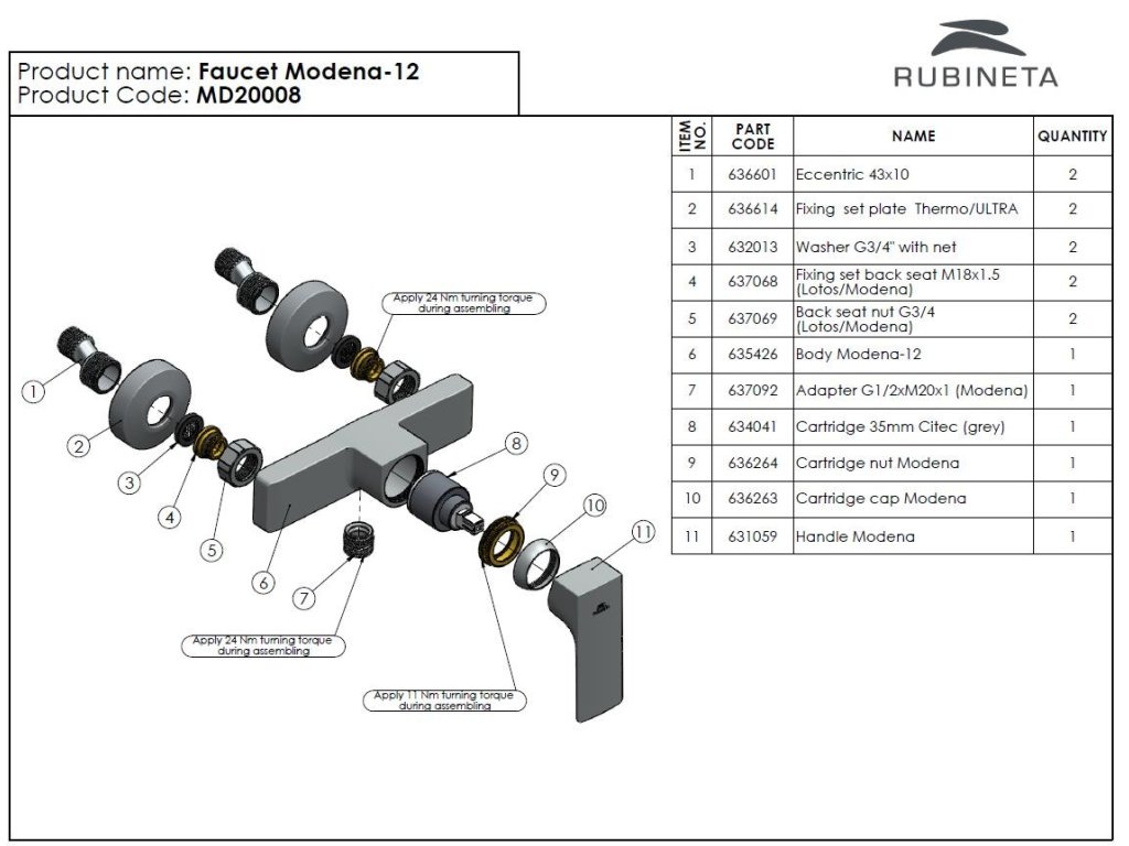 Přednosti sprchové baterie RUBINETA MODENA-12: