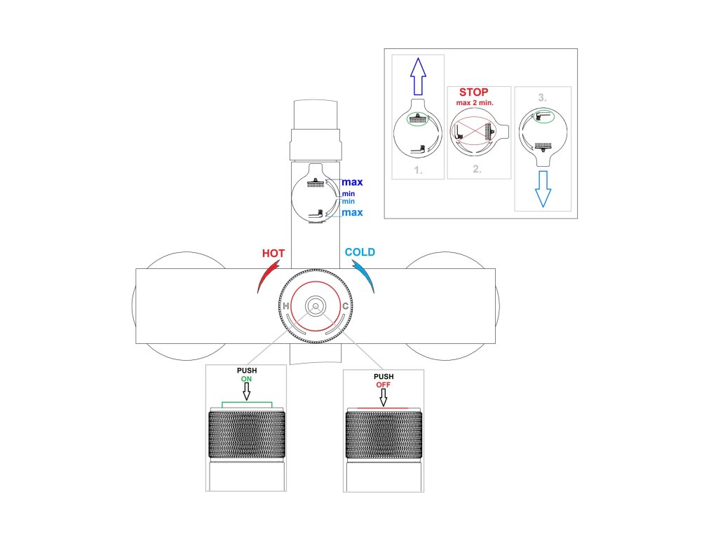 Výtoková hubice funguje jako přepínač, když je výtokové ramínko otočena tak či onak. Buď voda může protékat přes sprchovou hlavici nebo přes výtokové ramínko baterie. Sprchový set VENETO+EASY PUSH-10 a se sklopným výtokovým ramínkem vyniká vysoce kvalitním zpracováním a spolehlivou funkčností všech součástí a materiálů.