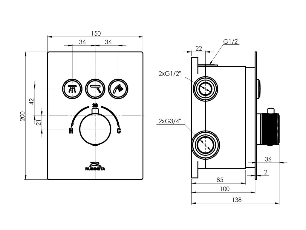 Rubineta Termostatická podomítková baterie Thermo-3F OLBAPM0016
