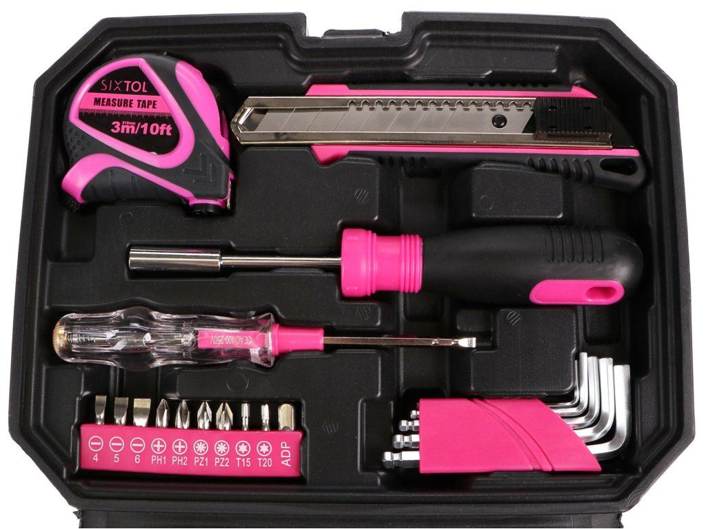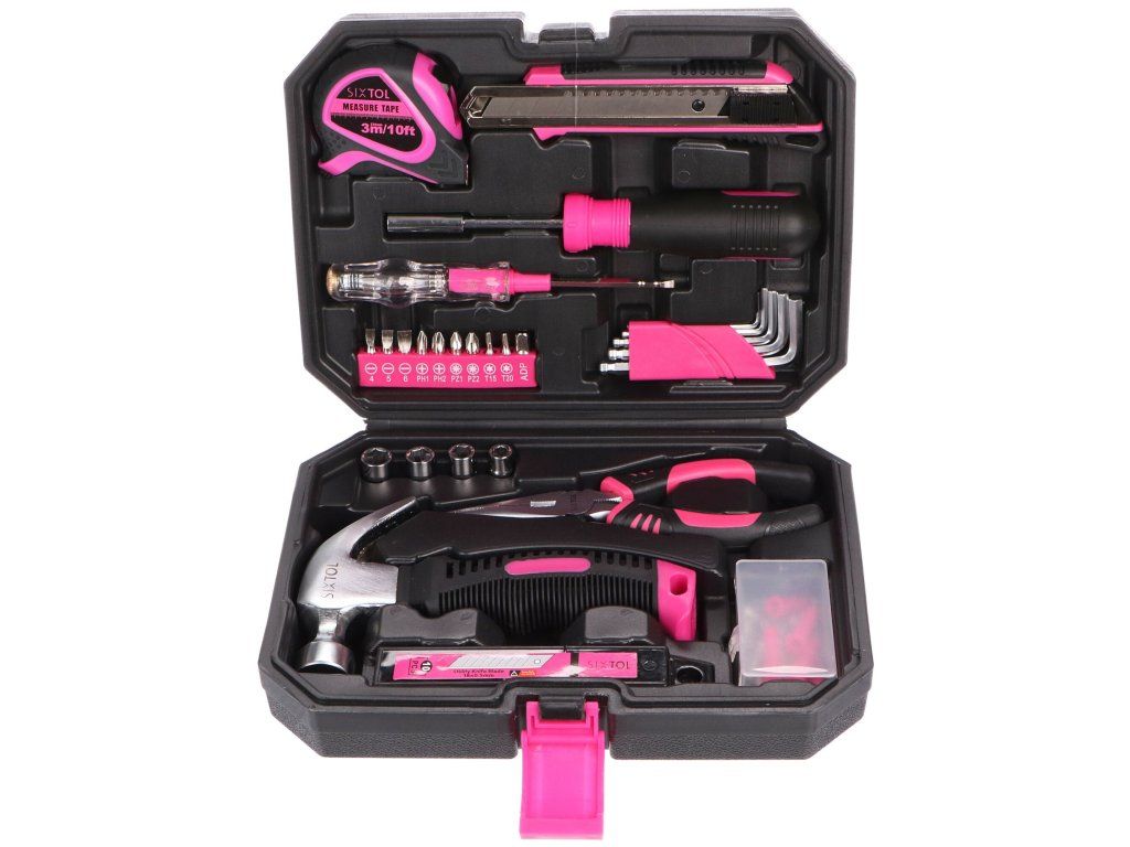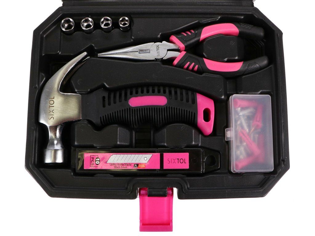 Sada nářadí Sixtol HOME PINK 66 se zalíbí každé praktické ženě či kutilovi, který má v oblibě růžovou barvu. Provedete s ní drobné opravy v domácnosti. Ve stylovém kufříku najdete celkem 66 kusů náčiní. Využijete je doma i v dílně.