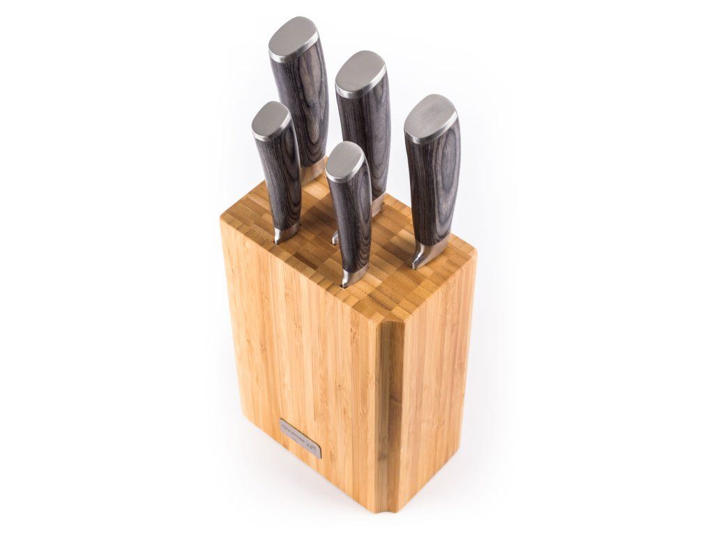 Správná péče o kuchyňské nože prodlouží jejich životnost a ostrost čepelí. Základem správné péče o nože je jejich vhodné ukládání – ideálně do stojanu na nože. Proto k sadě nožů G21 Gourmet Stone dostanete i originální blok na nože z vysoce odolného bambusového dřeva.