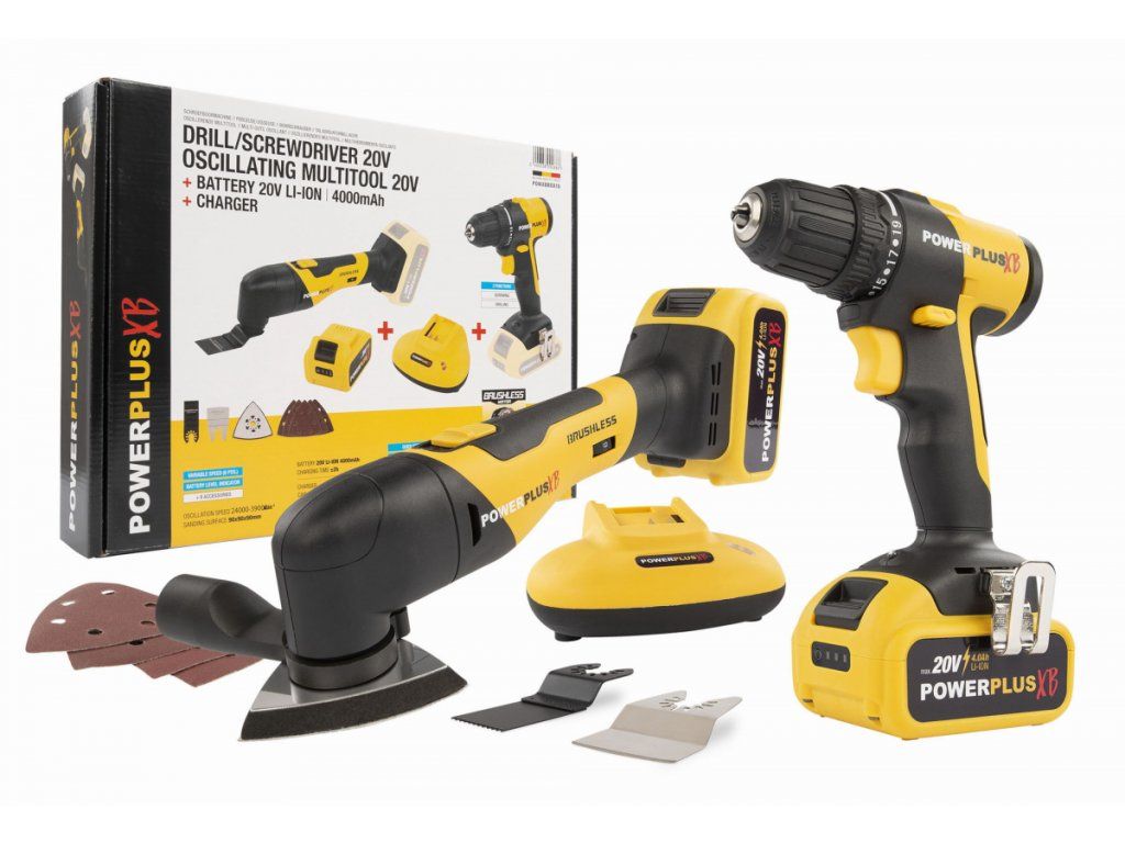 Sada Powerplus POWXBBOX10 - Aku vrtačka + multifunkční bruska 20 V, 4 Ah, 63606027