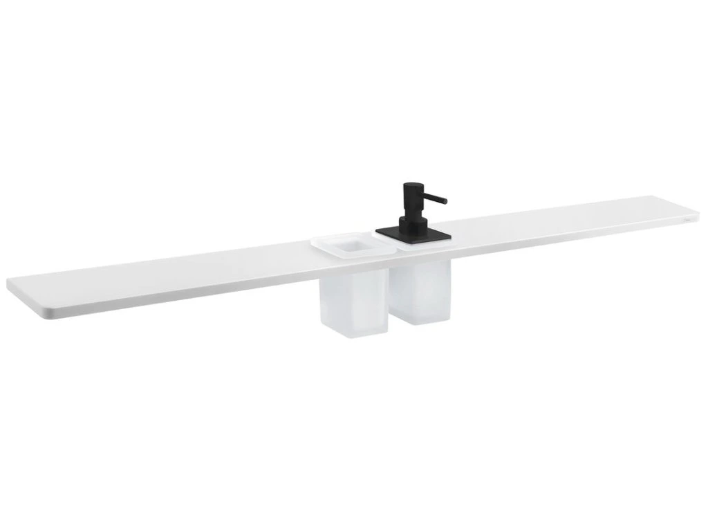 Sapho ABELINE police, sklenka + dávkovač/černá, 1000mm, rockstone, bílá mat AE102-0101-03