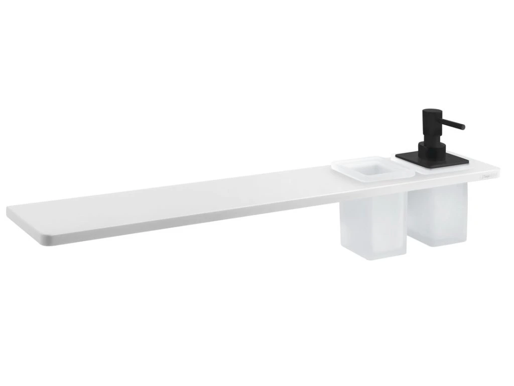 Sapho ABELINE police, sklenka + dávkovač/černá, 600mm, rockstone, bílá mat AE602-0101-03