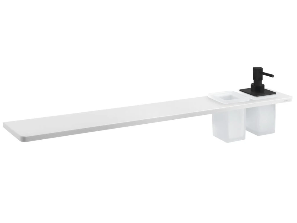 Sapho ABELINE police, sklenka + dávkovač/černá, 800mm, rockstone, bílá mat AE802-0101-03