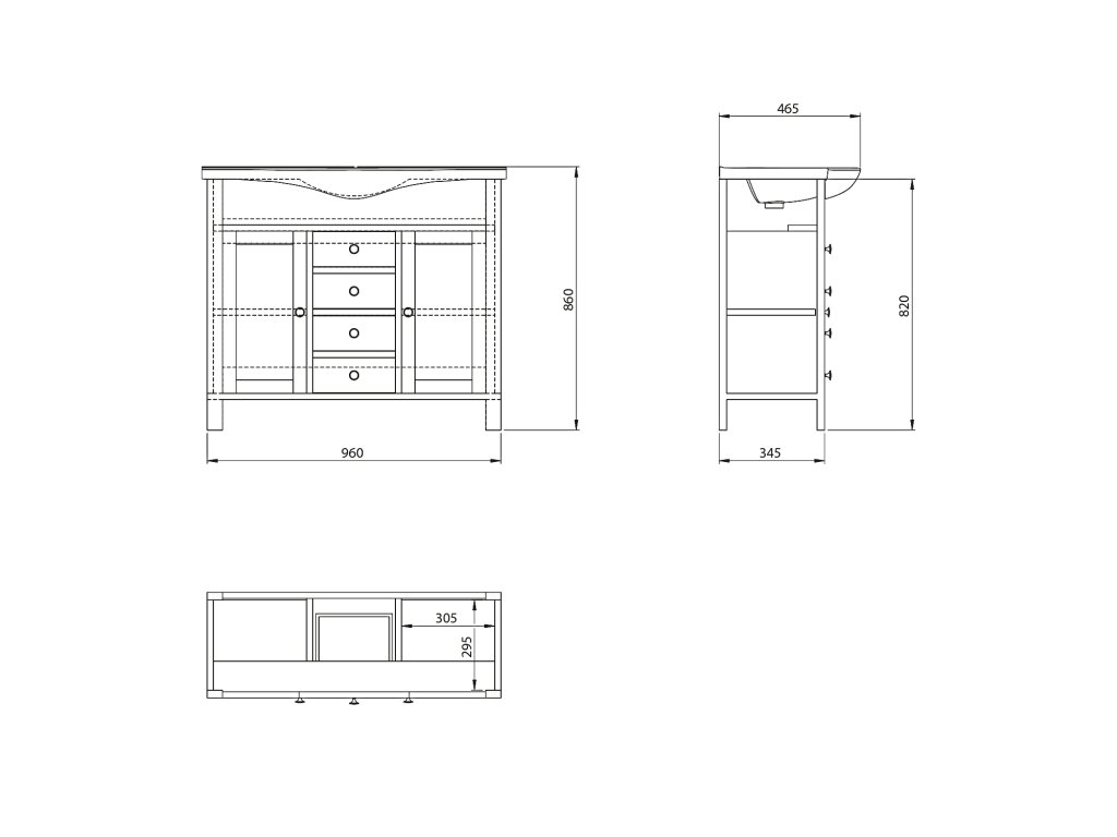 Sapho AMBRA umyvadlová skříňka 96x82x34,5cm, mořený smrk AB1040