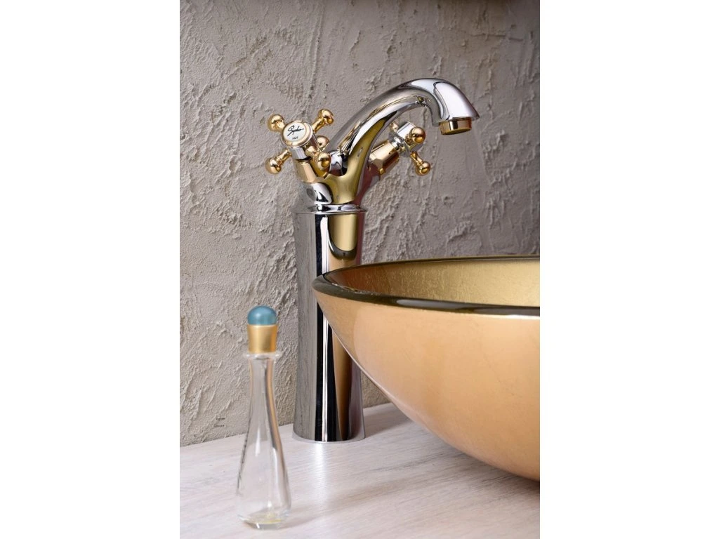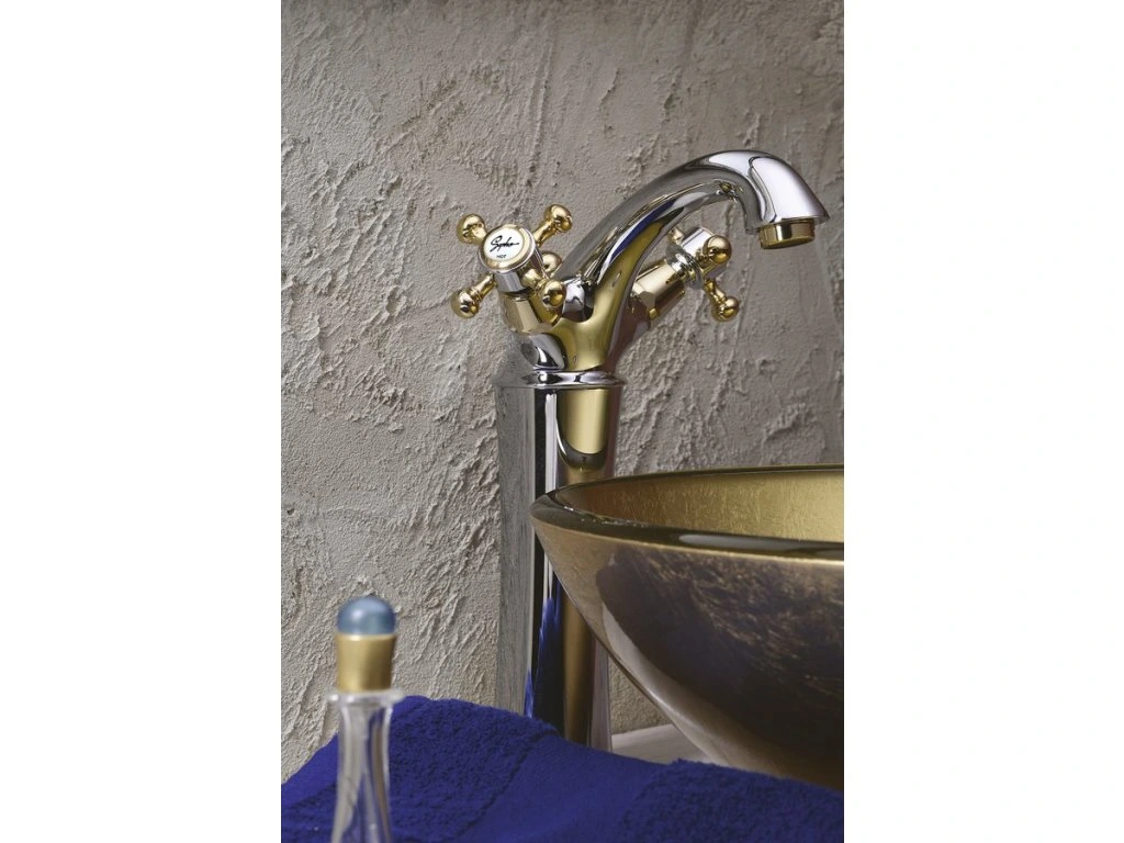 Sapho ANTEA stojánková umyvadlová baterie vysoká s výpustí, výška 245mm, chrom/zlato 3172L