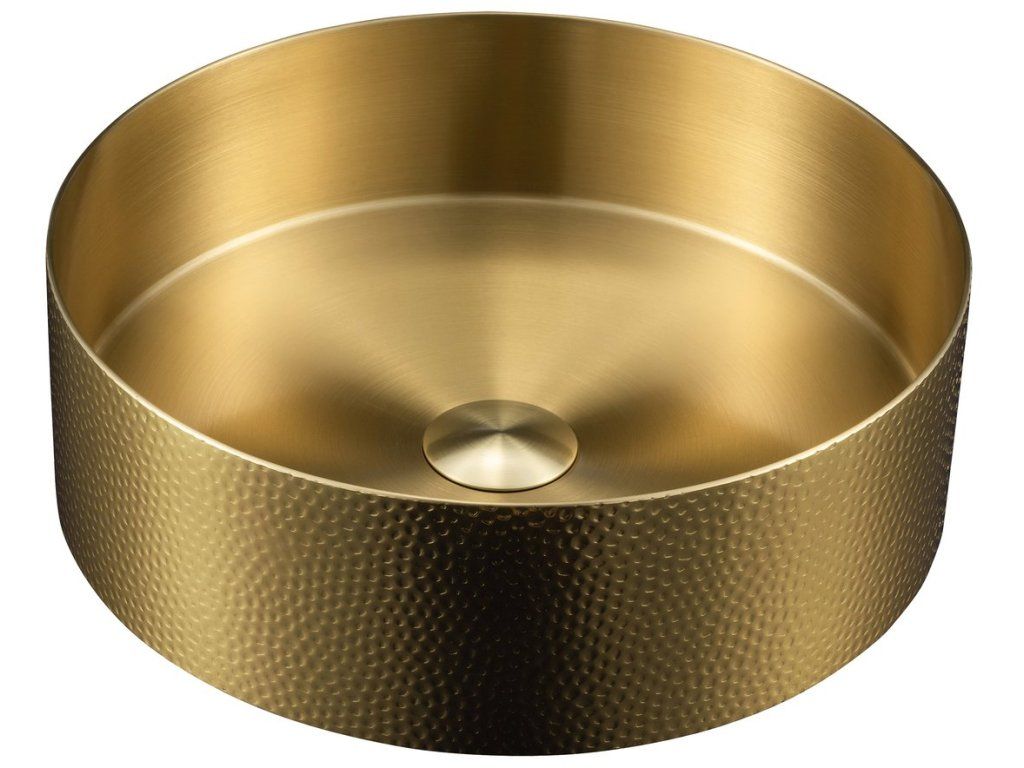 Sapho AURUM nerezové umyvadlo na desku, průměr 38 cm, včetně výpusti, tepané, zlato mat AU201-T
