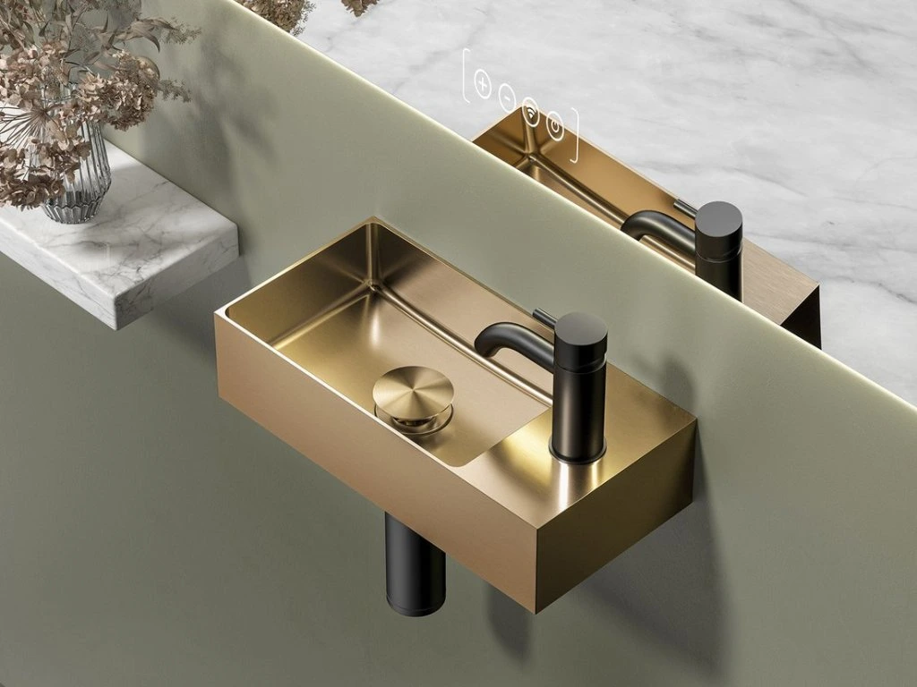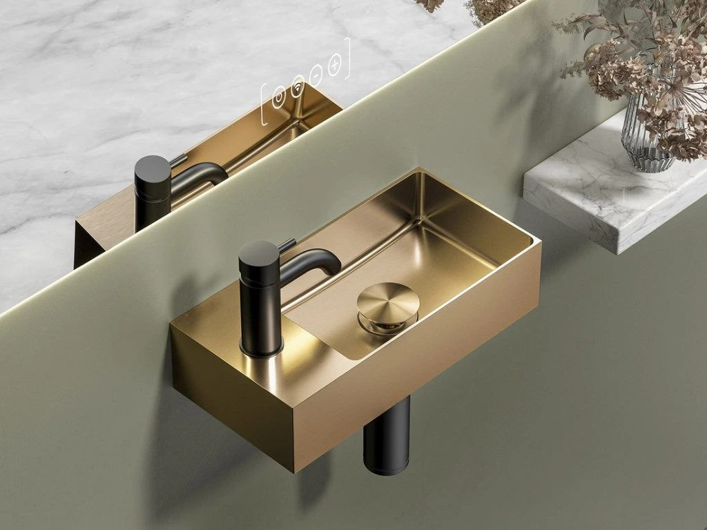 Sapho AURUM nerezové umývátko, 36,5x18cm, včetně výpusti, levé/pravé, měď mat AU304