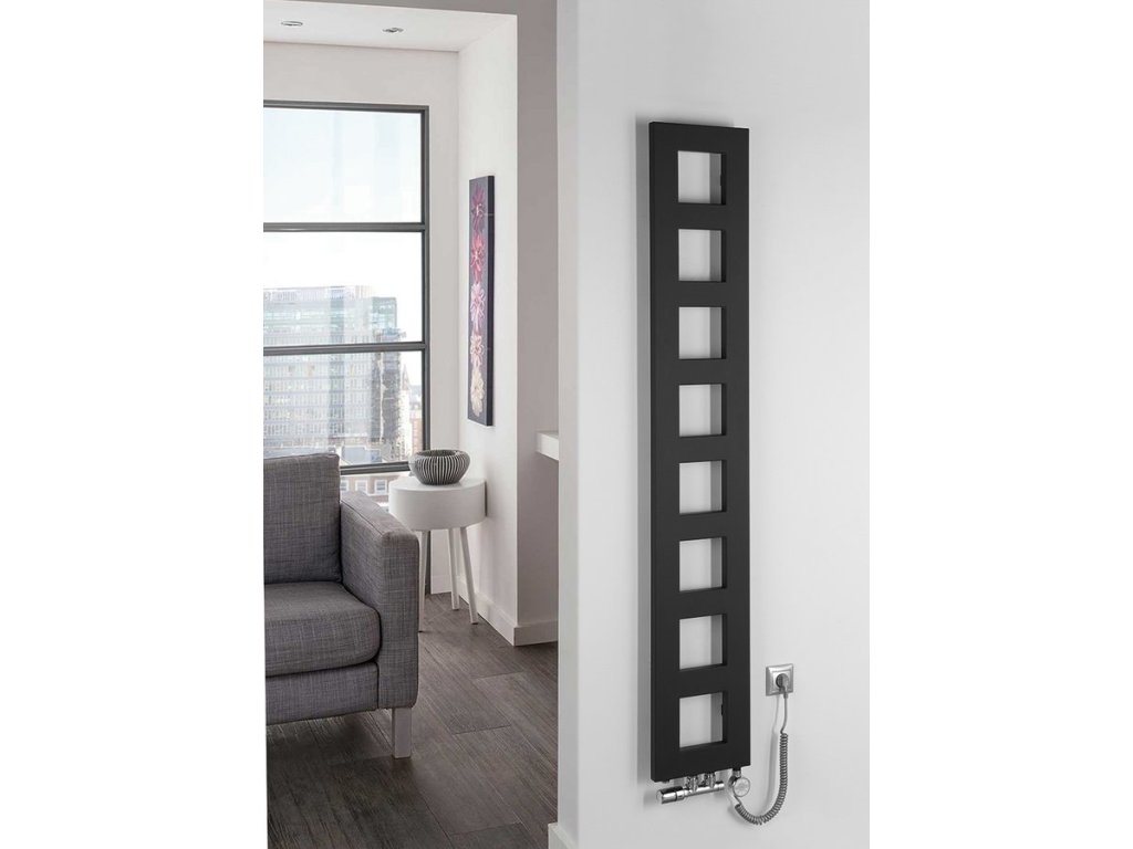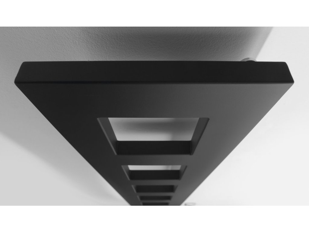 Designový radiátor ve dvou barevných variantách a dvou rozměrech. Ačkoliv má topení středové připojení, lze u něj zároveň použít topné tyče.