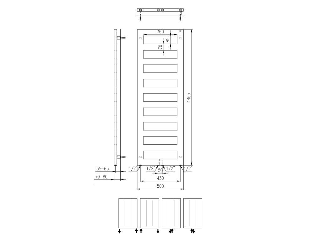 Kombinované připojení umožňuje ohřívat těleso jak centrálním systémem vytápění, tak využít pro samostatný ohřev elektrickou topnou tyč mimo topnou sezonu. Topnou tyč doporučujeme se stejným nebo podobným výkonem dle specifikace daného topného tělesa.