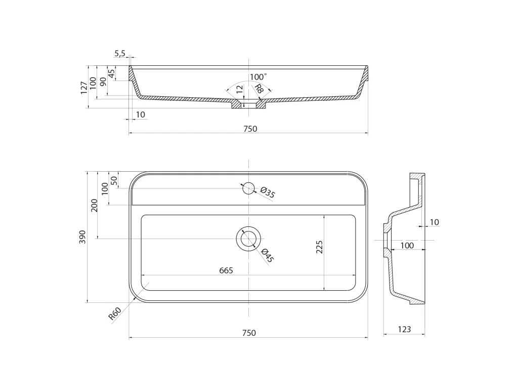 Sapho BRAHEA umyvadlo zápustné, Rockstone, 75x39 cm, bílá mat BE775