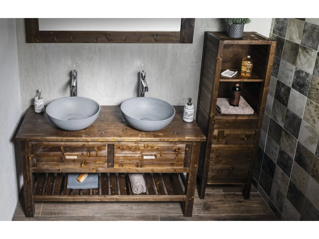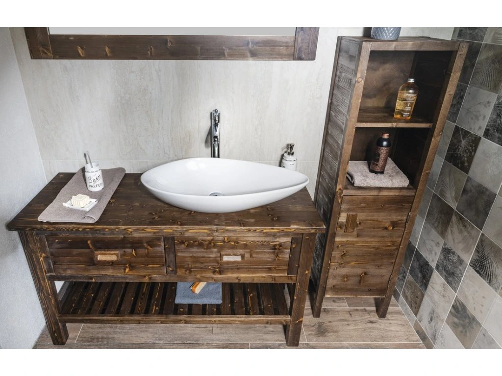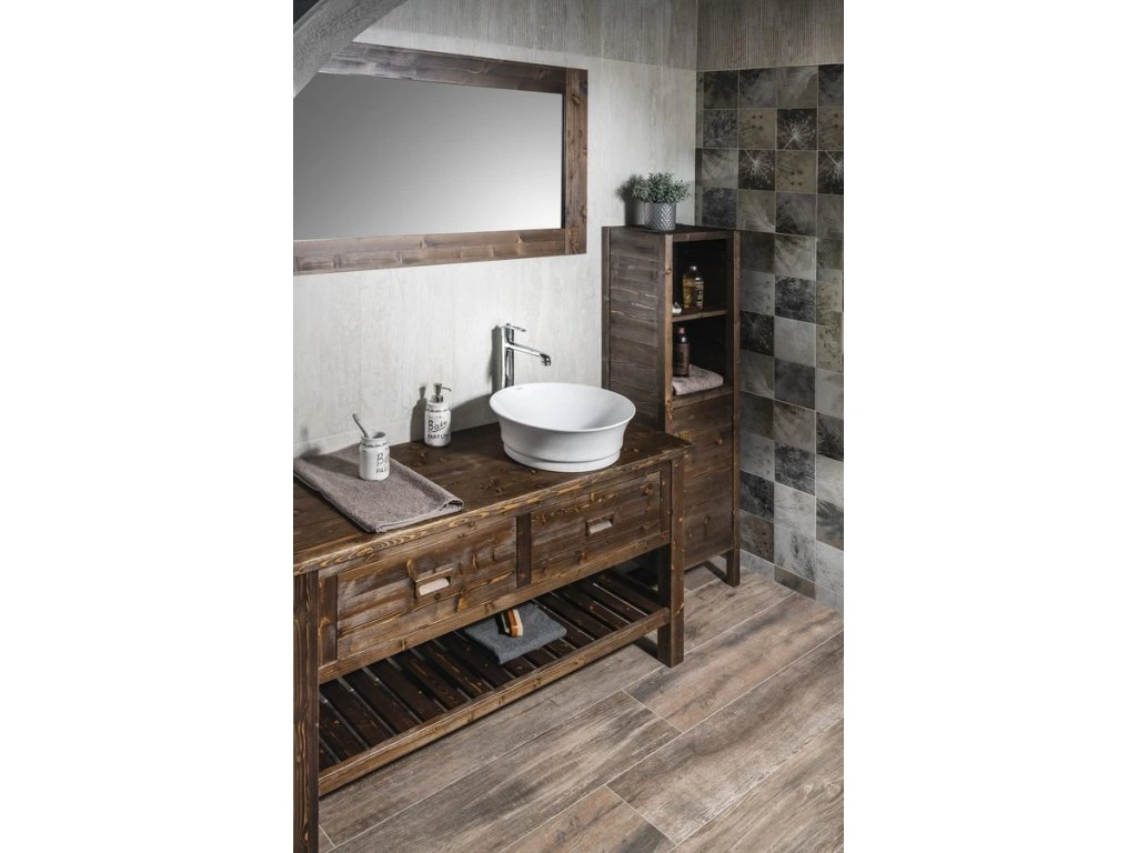 Bývalo pravidlem, že jednoduchý a vzdušný styl koupelny byl zastoupen pouze moderním nábytkem, pro který byly použity materiály typu ocel, sklo a umělý kámen a který striktně dodržoval minimalistický technostyl. Naše série BRAND tento mýtus boří. Díky propracovanému návrhu tvarů a použitých materiálů nabízí jednoduchý a vzdušný tvar. Použití masivního dřeva přímo vybízí k návrhu koupelny ve středomořském duchu. Nabídku umyvadlových skříněk s keramickým umyvadlem šířky 60 a 80 cm a umyvadlových stolků šířek 80, 100, 130 a 160 cm pro umyvadla na postavení doplňuje vysoká doplňková skříňka.
