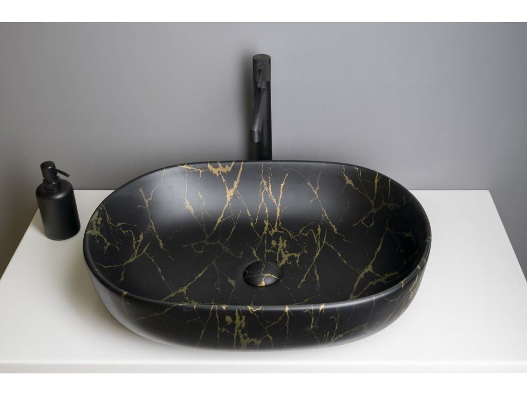 Sapho CALEO keramické umyvadlo na desku, 60x42cm, portoro mramor CA590PT