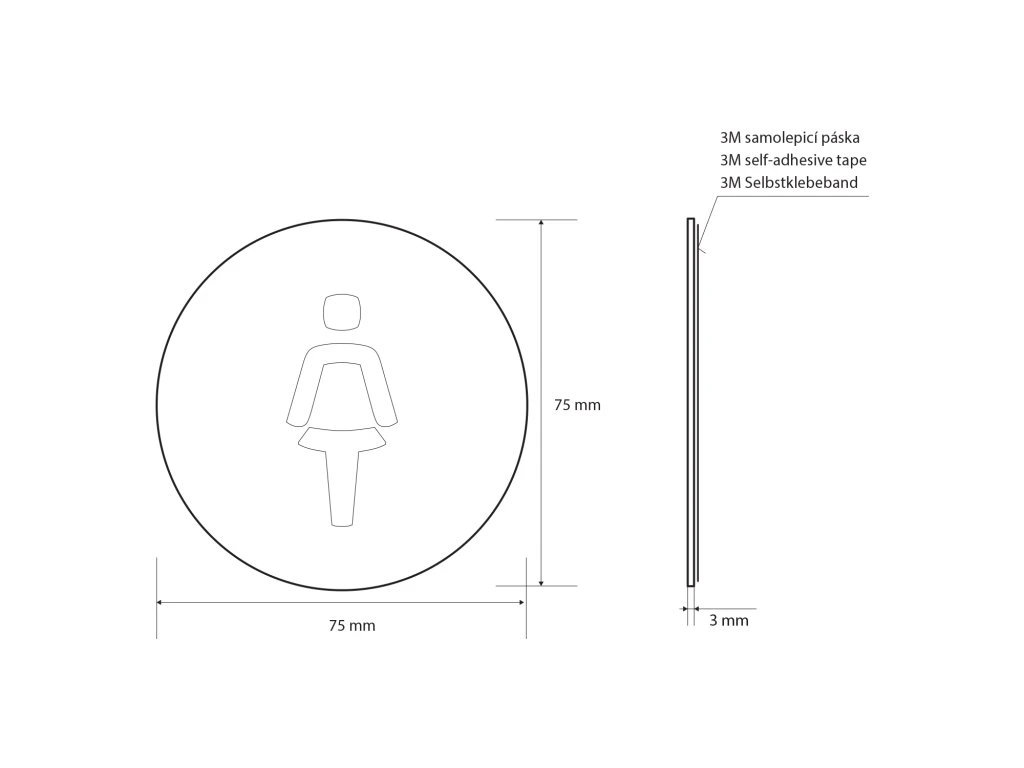 Sapho Cedule WC dámy, Ø 75mm, nerez mat XP111