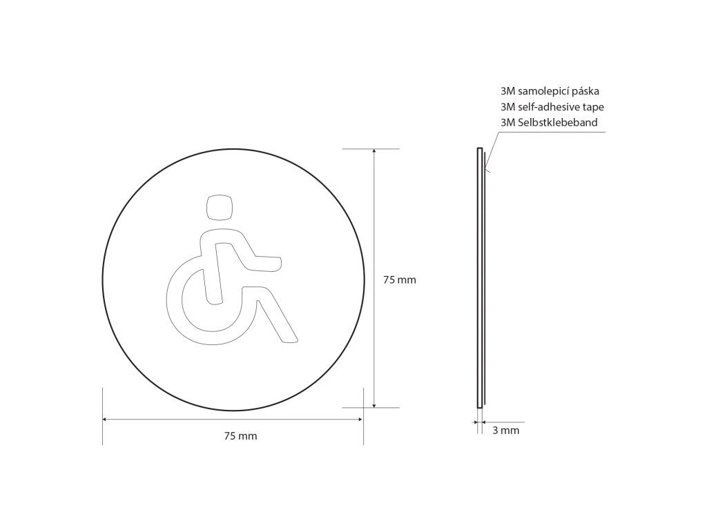 Sapho Cedule WC vozíčkář, Ø 75mm, nerez mat XP107