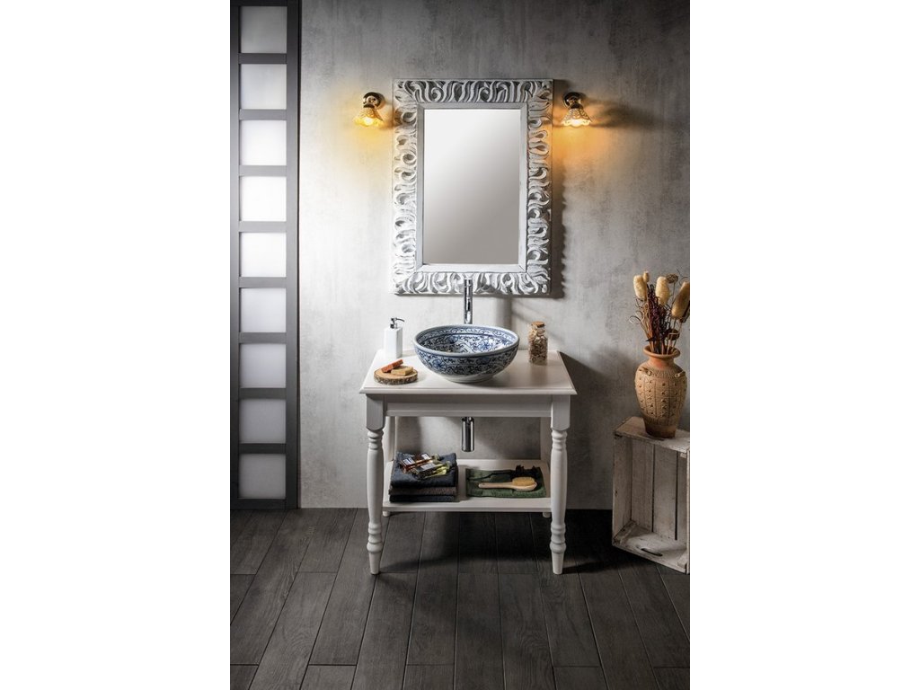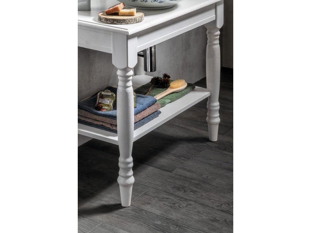 Stolek je vhodný pro umyvadla na postavení, absence šuplíku umožňuje libovolné umístění umyvadla i baterie v prostoru desky. Navíc je doplněn o praktickou spodní polici. V nabídce v šíři 80 a 100 cm a barevném provedení starobílá a mořený smrk.