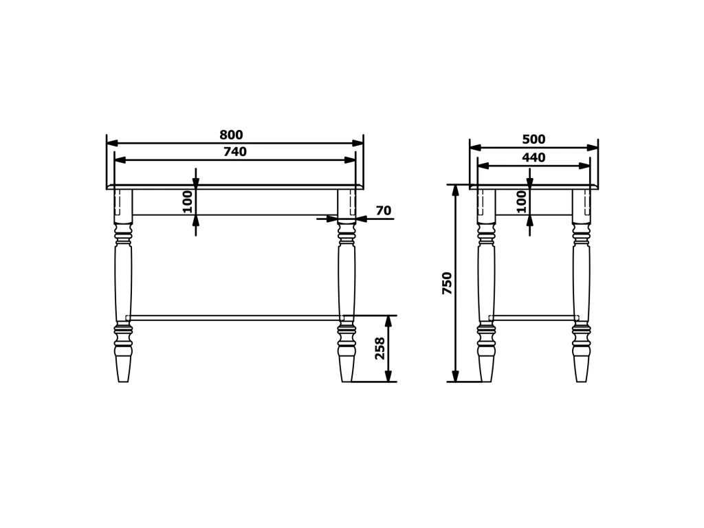 Stolek je vhodný pro umyvadla na postavení, absence šuplíku umožňuje libovolné umístění umyvadla i baterie v prostoru desky. Navíc je doplněn o praktickou spodní polici. V nabídce v šíři 80 a 100 cm a barevném provedení starobílá a mořený smrk.