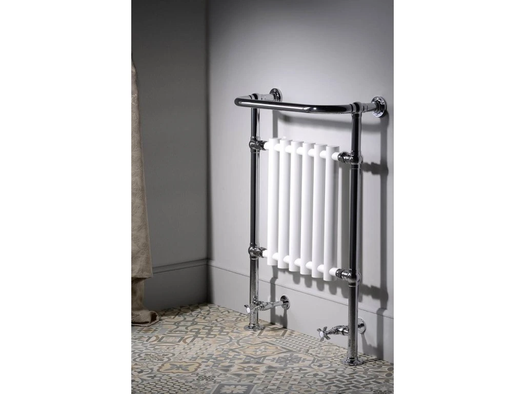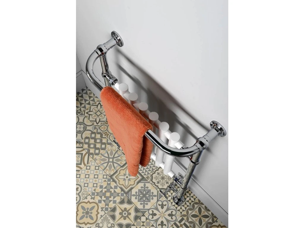 Otopné těleso v retro stylu nabízí kombinaci bílých a pochromovaných trubek, které dýchá retrem a zároveň modernou. Navíc má praktické madlo použitelné jako držák ručníků.