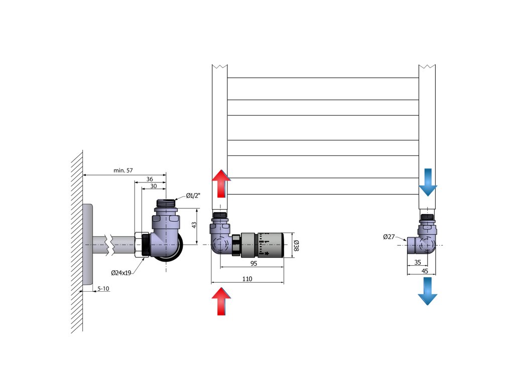 V případě ústředního vytápění je důležitý výběr připojovací sady ventilů. Na výběr je použití ručního ventilu nebo ventilu s termostatickou hlavicí.