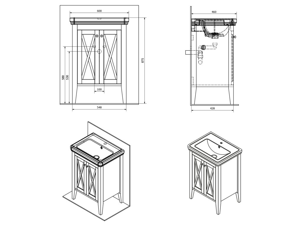 Sapho CROSS umyvadlová skříňka 55x81x43cm, starobílá CR260
