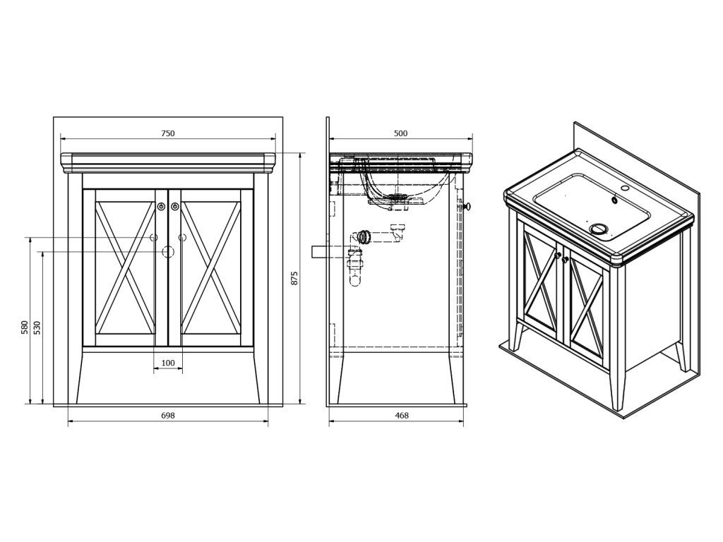 Sapho CROSS umyvadlová skříňka 70x81x47cm, buk CR375