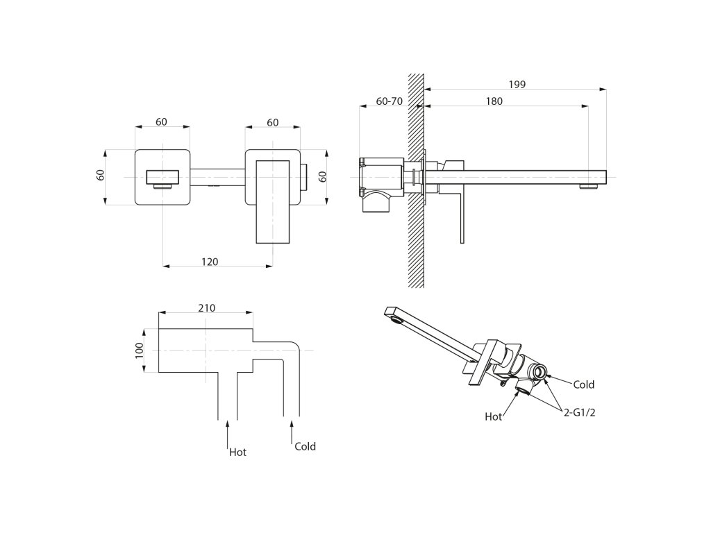 Sapho CUBEMIX podomítková dvouprvková umyvadlová baterie, chrom CM008