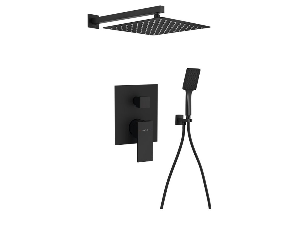 Sapho CUBEMIX podomítkový sprchový set s pákovou baterií, 2 výstupy, vyústění, černá mat CM042B-01