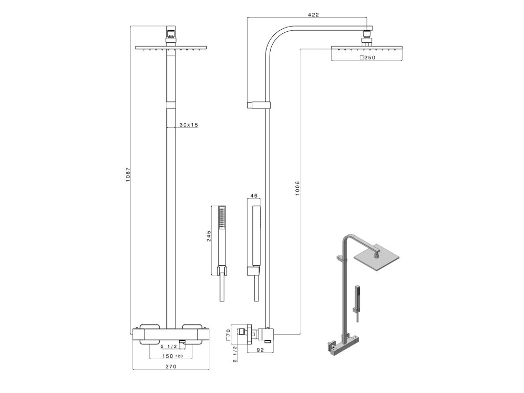Sapho DIMY sprchový sloup s termostatickou baterií, černá mat DM322BL