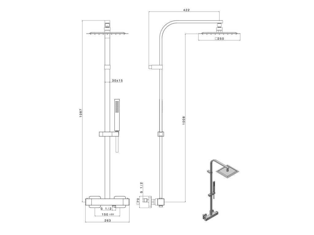 Sapho DIMY sprchový sloup s termostatickou baterií, chrom DM322