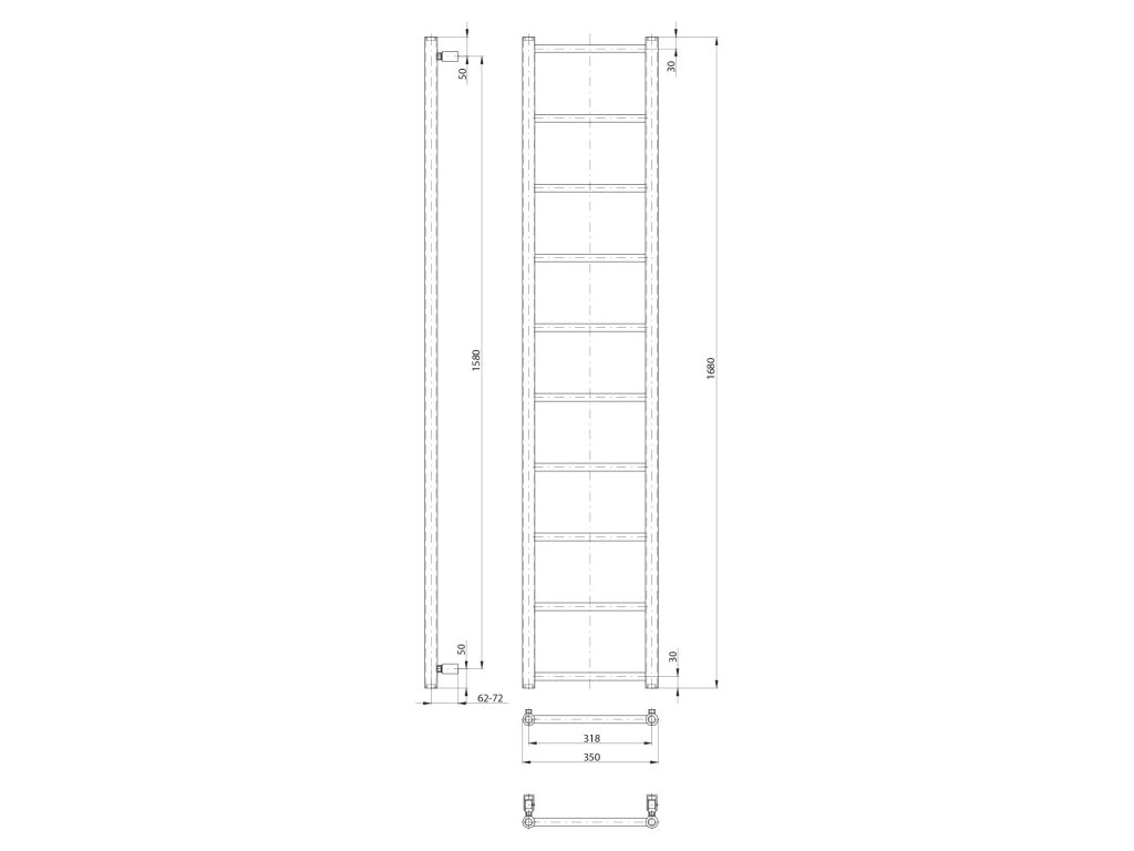 Elegantní koupelnový radiátor ze správně kombinovaných průměrů vodorovných a svislých trubek. Krása v jednoduchosti skloubená s atraktivním barevným provedením.