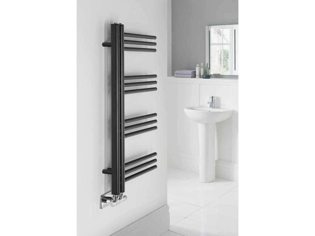 Designově tvarované koupelnové otopné těleso s výjimečným vzhledem je vyrobeno z ocelových trubek. U radiátoru oceníte zejména jeho praktičnost, díky své konstrukci umožňuje jednoduché a pohodlné zavěšení ručníků ze strany na horizontální tyče. Praktická rozteč 50 mm středového připojení umožňuje kombinovat s designovými ventily z naší nabídky i v kombinaci s elektrickou topnou tyčí.