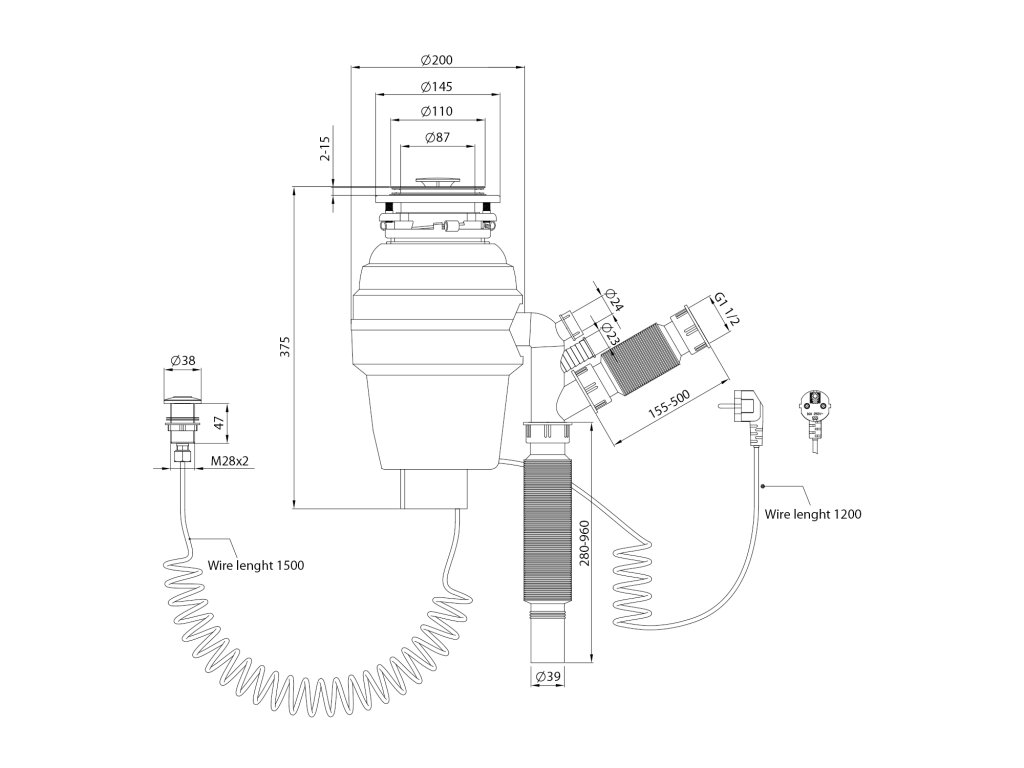Sapho Dřezový drtič kuchyňského odpadu, 230V, 375W, pneu. spínač DW576