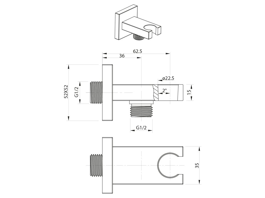 Sapho Držák sprchy hranatý, pevný, s vyústěním, černá mat AQ591B