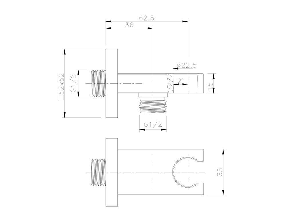 Sapho Držák sprchy hranatý, pevný, s vyústěním, zlato mat AQ591GB