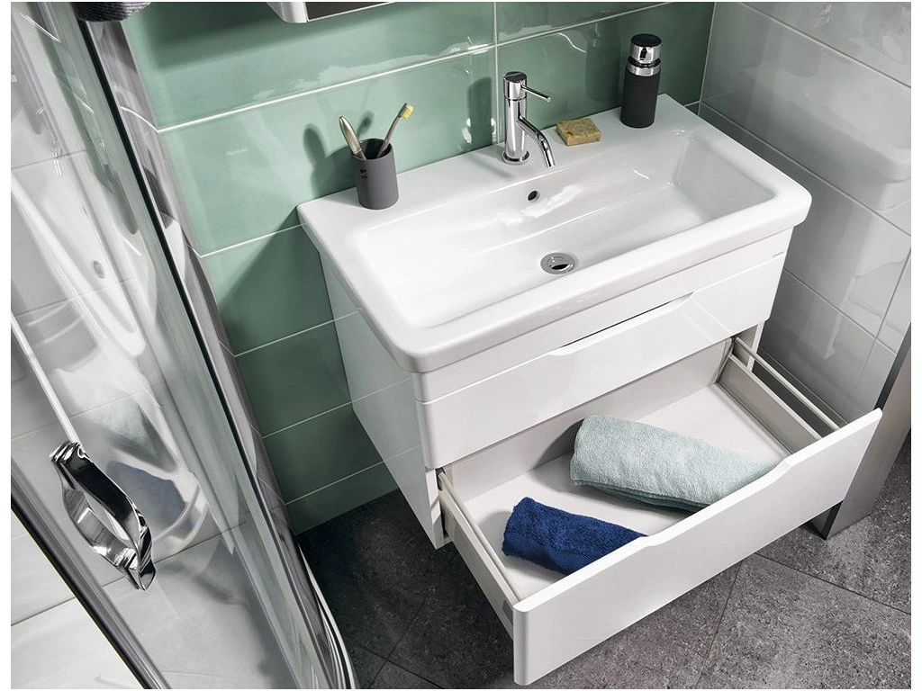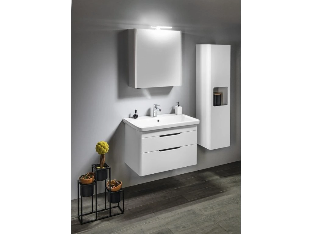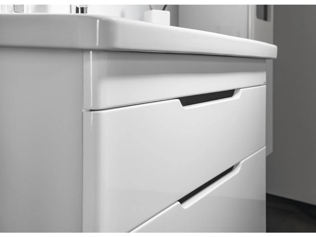 Designová série ELLA zaoblenými rohy harmonicky ladí s keramickými umyvadly City. Bezúchytový systém umožňuje pohodlné otevírání zásuvek, samozřejmostí je systém jejich automatického dovření. Vybírat můžete mezi umyvadlovými skříňkami se zásuvkami a s dvířky. Sérii dotváří doplňkové vysoké policové skříňky.