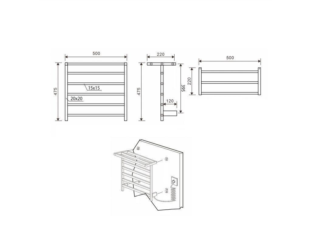 Sapho ELZOR elektrický sušák ručníků 500x470 mm, 60 W, černá mat EB510