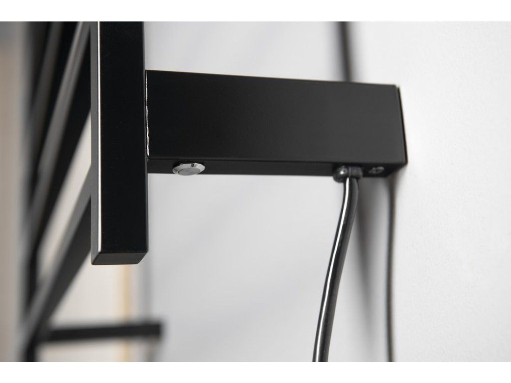 Vypínač je integrován ve spodní části pravého vertikálního profilu. Těleso lze zapojit přímo do elektrické zásuvky díky kroucenému kabelu zakončenému vidlicí nebo můžete napájecí kabel skrýt a napojit ho přímo ze stěny do svorkovnice schované v konstrukci tělesa. Napájecí kroucený kabel (délka 1,2 m) je vpravo dole a nelze ho pozičně měnit.
