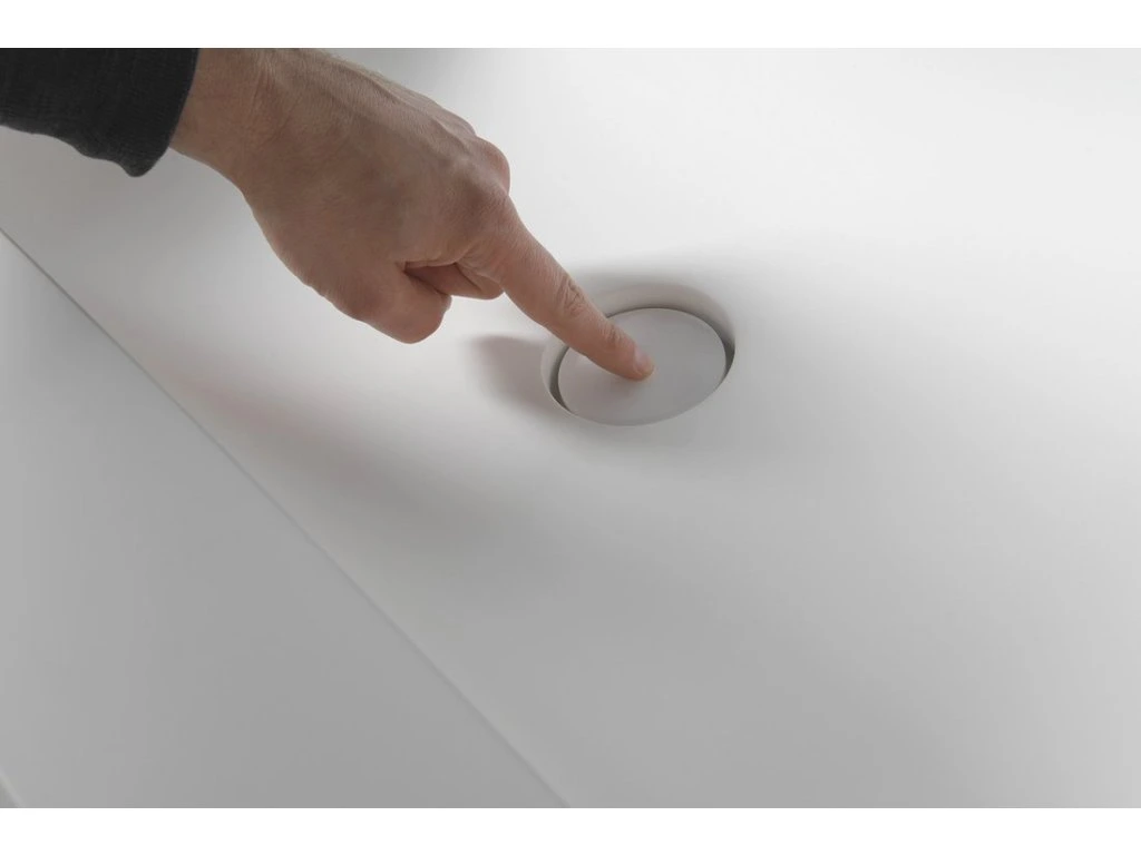 Zátka umyvadlové výpusti je vyrobena ze stejného materiálu jako umyvadlo. V otevřené poloze je zátka v jedné rovině se dnem umyvadla. Umyvadlo lze umístit i do vyzděné niky. Doporučujeme instalovat každých 70 cm podpěrnou konzoli.