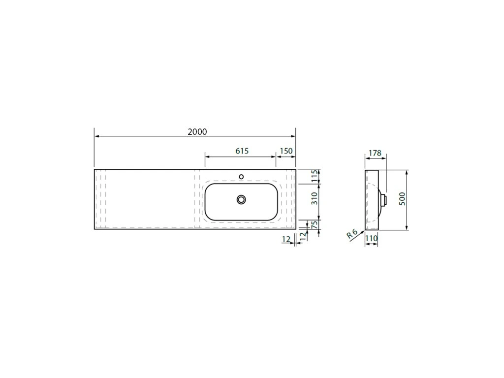 Zátka umyvadlové výpusti je vyrobena ze stejného materiálu jako umyvadlo. V otevřené poloze je zátka v jedné rovině se dnem umyvadla. Umyvadlo lze umístit i do vyzděné niky. Doporučujeme instalovat každých 70 cm podpěrnou konzoli.