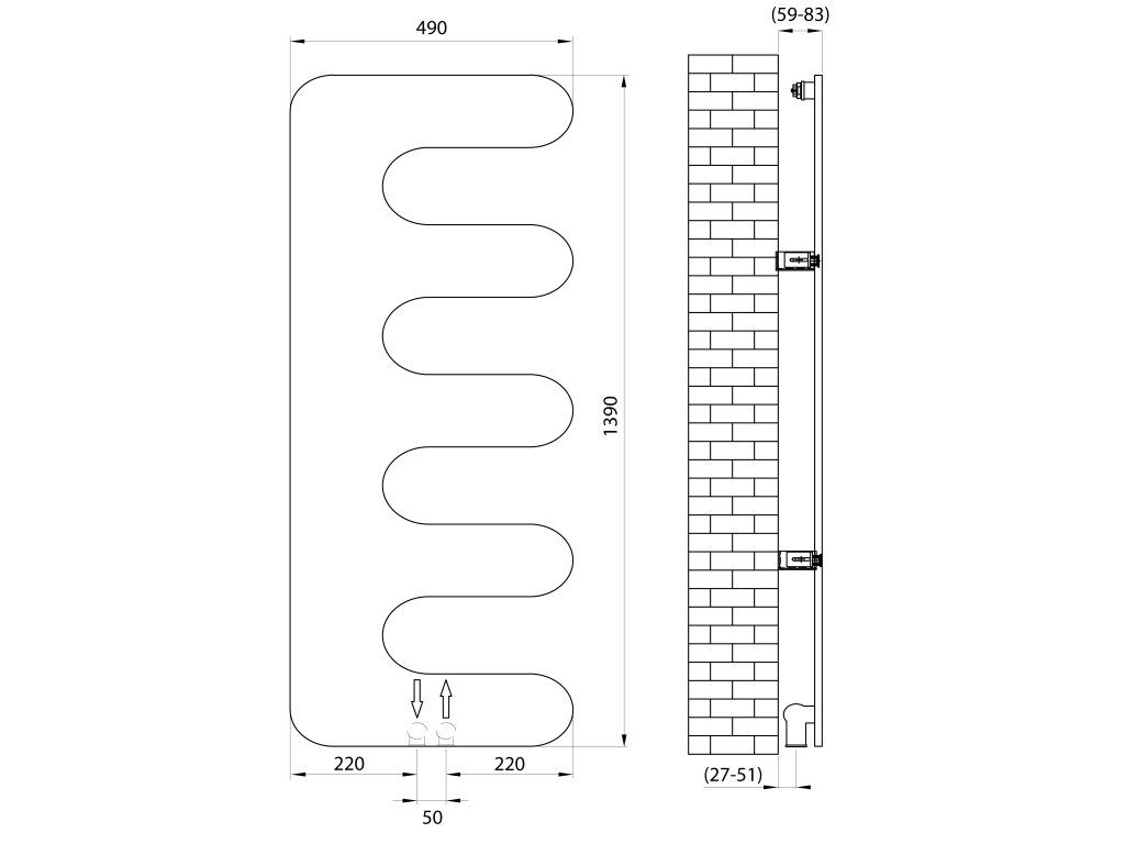 Topení s připojovací roztečí 50 mm