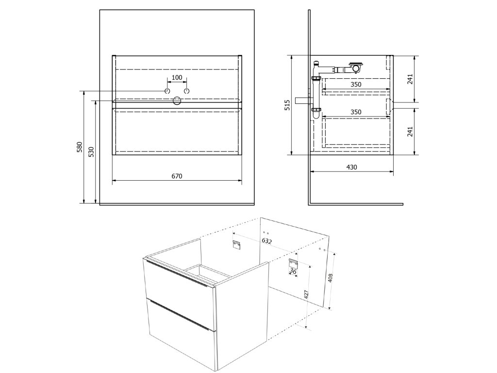 • Možnost instalace s nábytkovým umyvadlem nebo s Rockstone deskou a umyvadlem na desku.