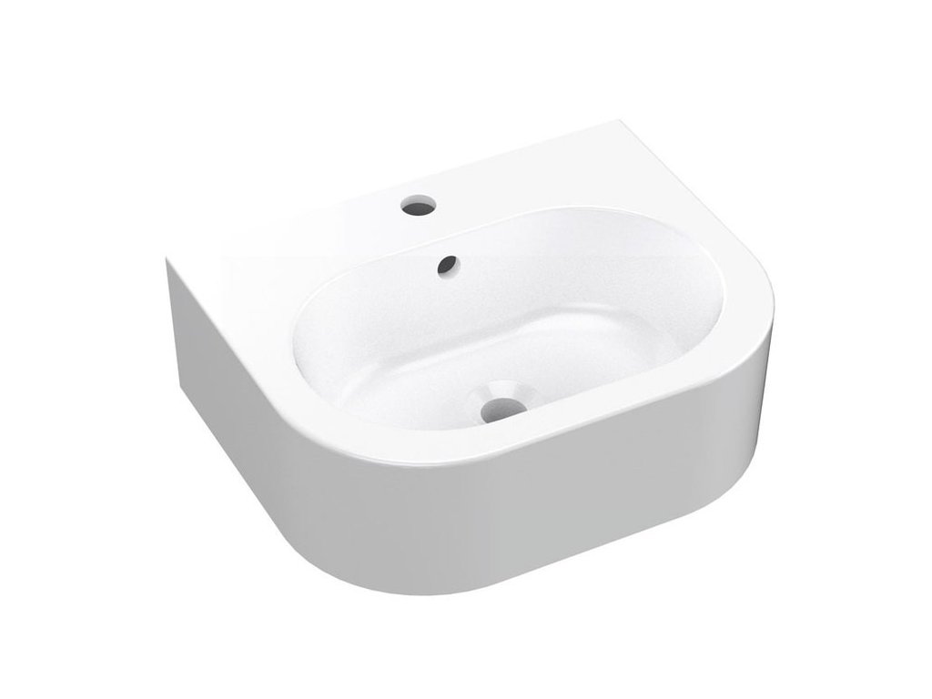 Keramické umyvadlo s přepadem a jedním otvorem pro baterii.