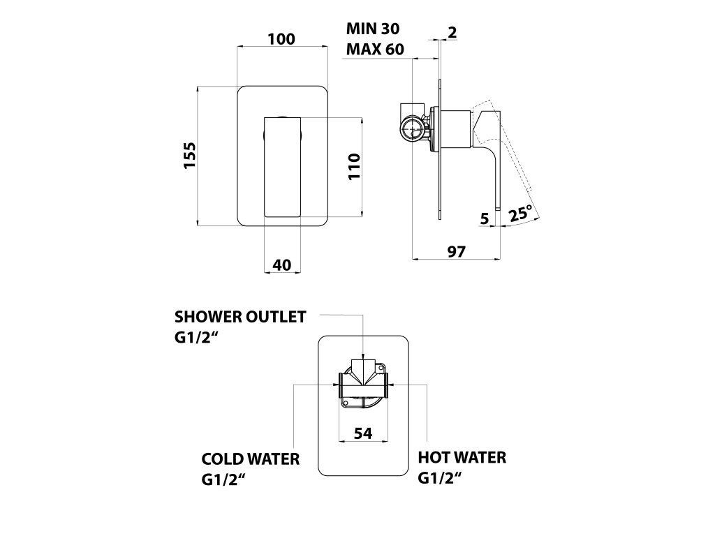 Sapho FORATA podomítková sprchová baterie, 1 výstup, černá mat FT041/15