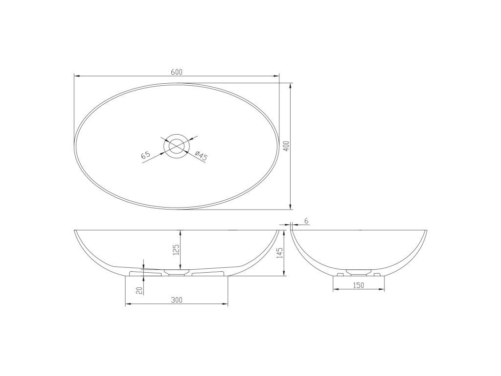 Tloušťka stěny u horní hrany umyvadla: 6 mm (stěna je kónická, vnitřní strana se směrem dolů mírně rozšiřuje).