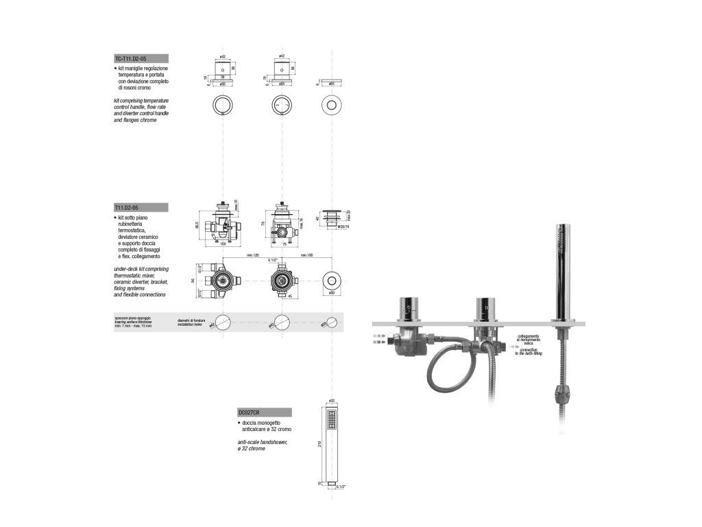 Sapho GO tříprvková termostatická baterie na okraj vany, chrom TH102