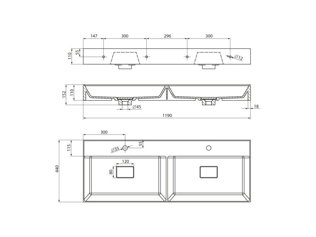| Typ umyvadla: | Dvojumyvadlo |